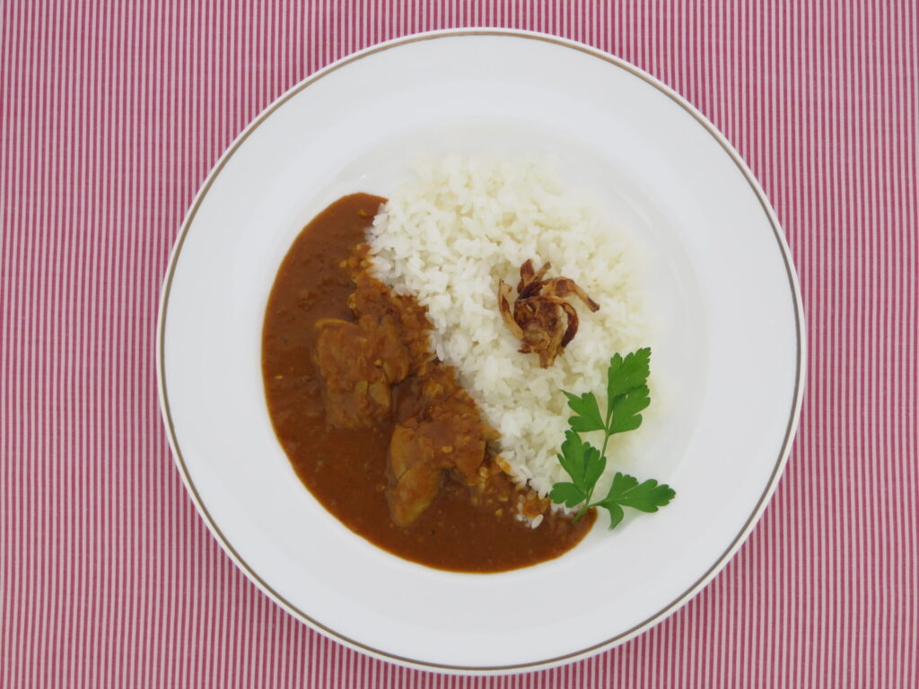 じっくり炒めて甘味を出したタマネギや小麦粉を使ったデミグラスソース、スパイスの辛味をマイルドにする生クリームなどを加えたカレーソースで鶏肉を煮込みました。スパイスの香りを生かしつつ、まろやかで深みのある味わいに仕上げた欧風カレーソースをお楽しみください。